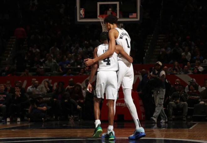 文班亚马新秀年,搭档的后卫是琼斯、韦斯利和布兰汉。